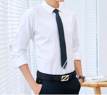 最后一種那就是針織面料的襯衫,這類襯衫最大的特色是其面料的質(zhì)感,有彈性,顏色一般較素雅,黑白灰色居多,可以用與襯衫匹配的深色底條紋領(lǐng)帶進行搭配。